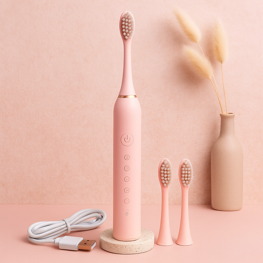 Elektryczna szczoteczka soniczna z timerem + wymienne końcówki (IPX7)
