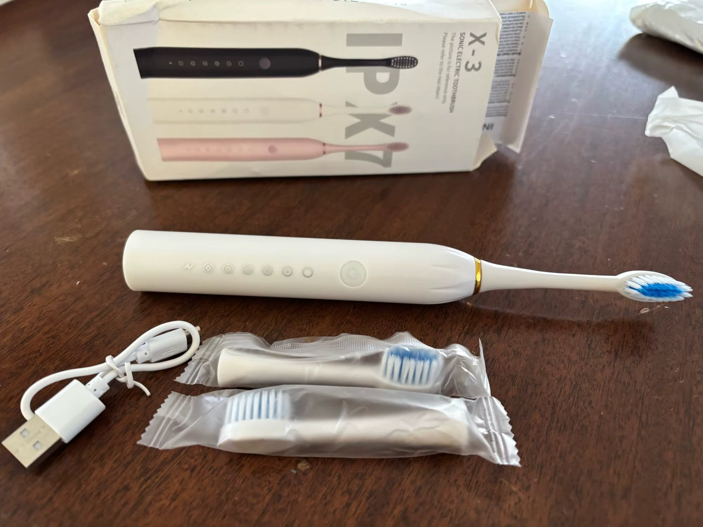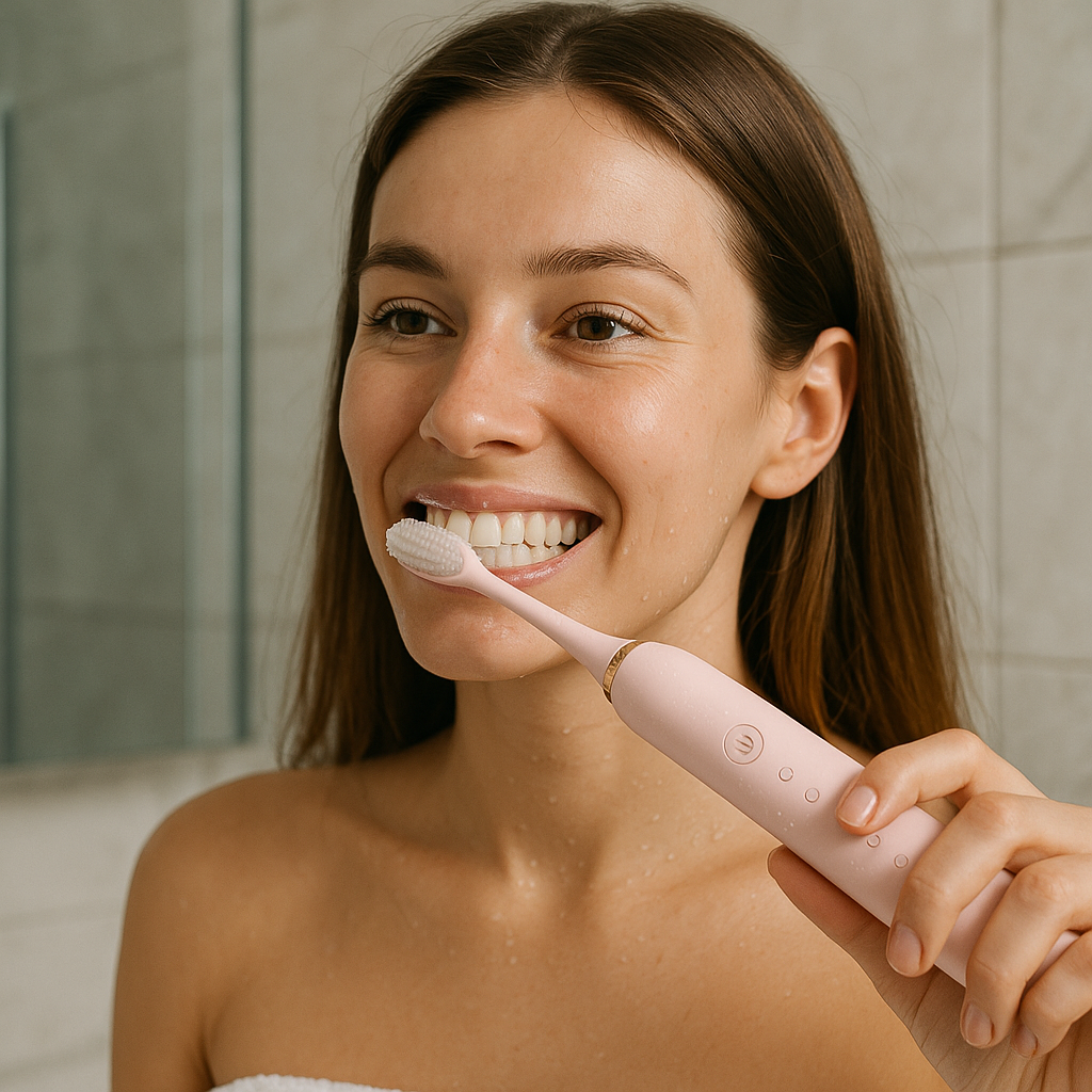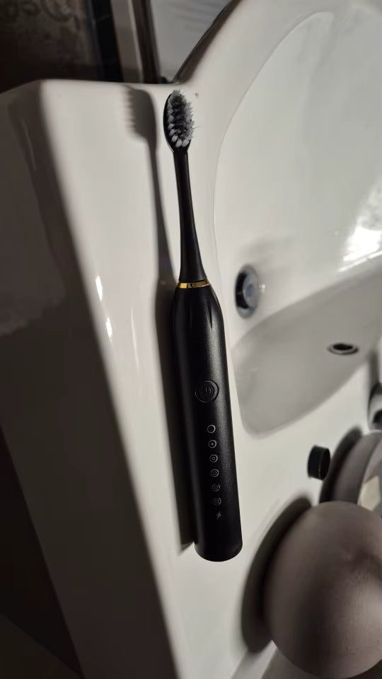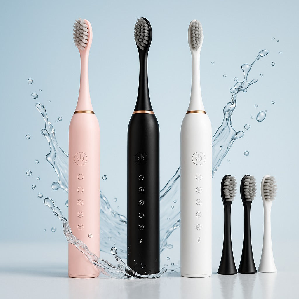 Elektryczna szczoteczka soniczna z timerem + wymienne końcówki (IPX7)